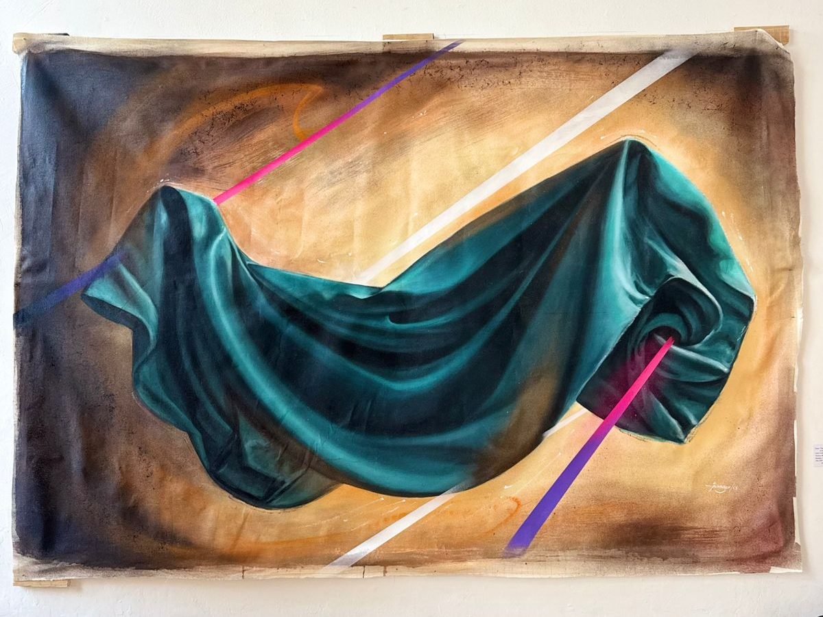Sus composiciones no solo representan el movimiento: lo estructuran, lo fragmentan y lo reconstruyen como sistema visual. A través de capas, ritmos, tensiones y modulaciones cromáticas, el gesto de la acción y el momentum conceptos adoptados de la práctica del graffiti se expanden hacia una gramática visual donde convergen flujo, resistencia y permanencia.